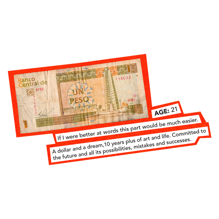 If you’re old, find something physical that represents your experience being young, write a few lines on how it was a representation of your youth, what you’d tell your younger self right now, and state age.